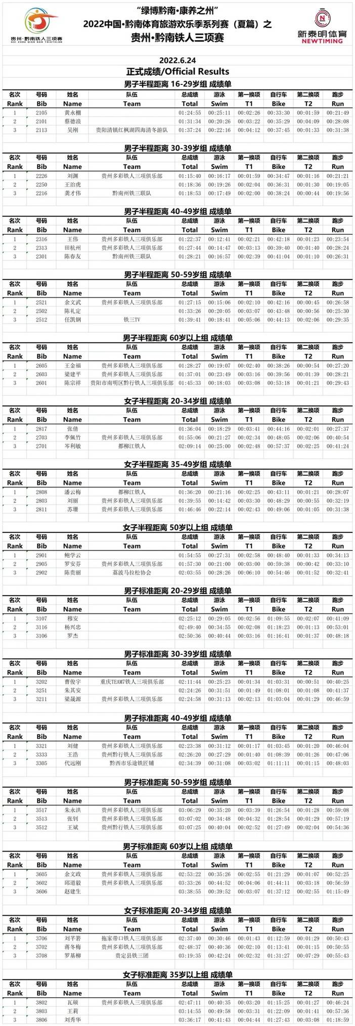 经过激烈的争夺,最终曹俊宇以总成绩02:11:44率先通过终点,夺得男子标准距离 30-39岁组的冠军,也是男子标铁组的最快成绩;刘芊箬以02:37:40夺得女子标准距离 20-34岁组冠军,为女子标铁组最快成绩;刘渊以01:15:40的成绩,获得男子半程距离 30-39岁组的冠军,为男子半程组的最快成绩;张倩以01:36:04的成绩获得女子半程距离 20-34岁组冠军,为女子半程组的最快成绩。