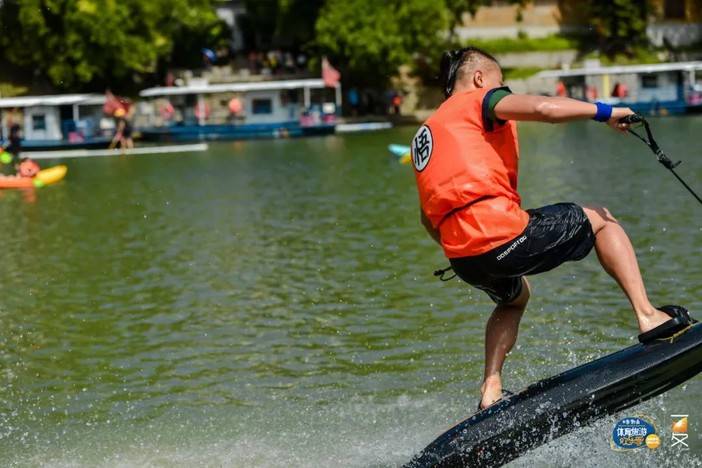 ▲电动冲浪板在樟江水面上尽情腾跃,激起阵阵水花,赢得阵阵掌声。