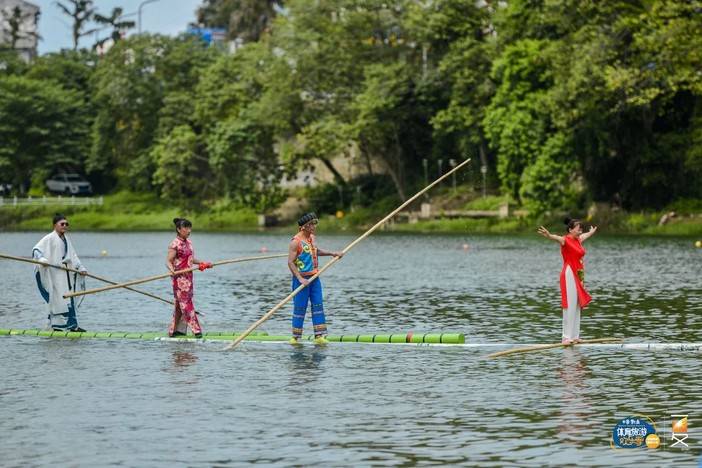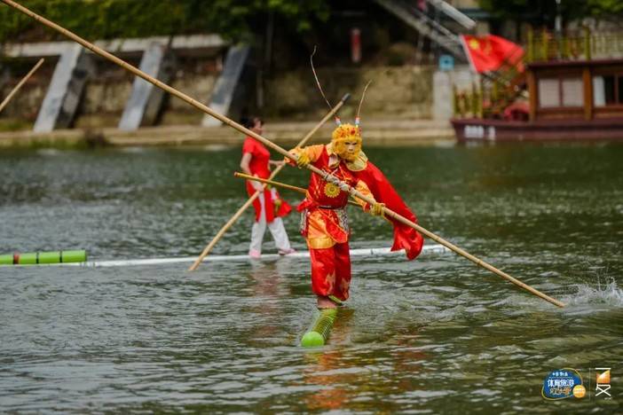 ▲独竹漂集技术与艺术于一体,在樟江水面上的表演如同一幅优美的画卷一般。