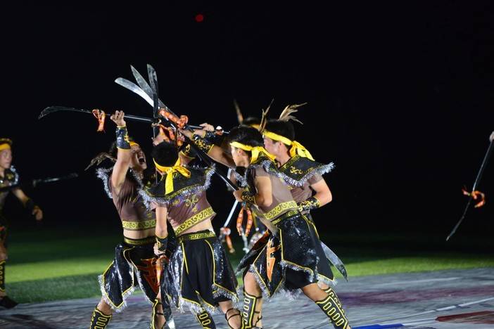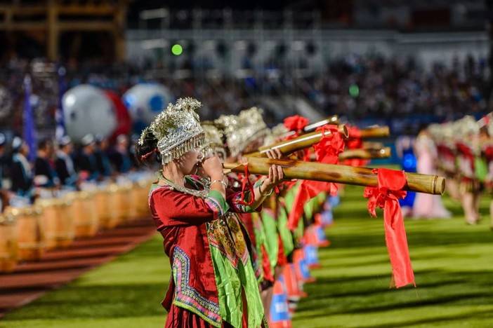▲刚在6月中旬举办的贵州省第十届少数民族传统体育运动会上夺得表演项目综合类一等奖的三都水族自治县原创节目《水武天戈》也在欢乐夜上盛大呈现,水族人强健的体魄、自强不息的精神在响彻云霄的鼓声中、在洪亮的呐喊声中,展现黔南州绚丽多姿的民族风情和优秀美好的传统文化。