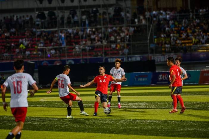 ▲赛场内激烈拼抢,赛场外欢呼声此起彼伏。