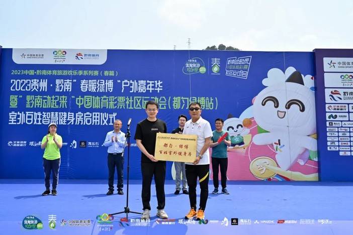 活动当天,黔南州文化广电和旅游局(州体育局)向都匀市文化广电和旅游局(市体育局)移交了“都匀·绿博百姓室外健身房项目牌“,并宣布“都匀·绿博百姓室外健身房”正式启用。