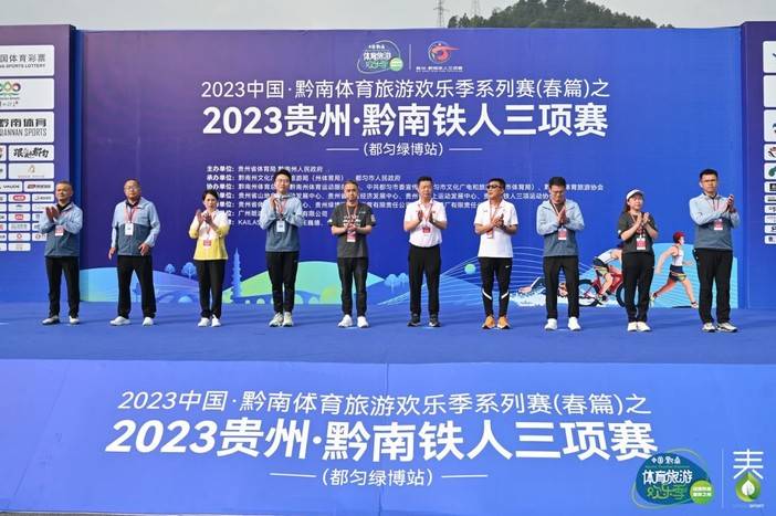 2023中国·黔南体育旅游欢乐季系列赛(春篇)之2023贵州·黔南铁人三项赛(都匀绿博站)在都匀绿博园顺利开赛。