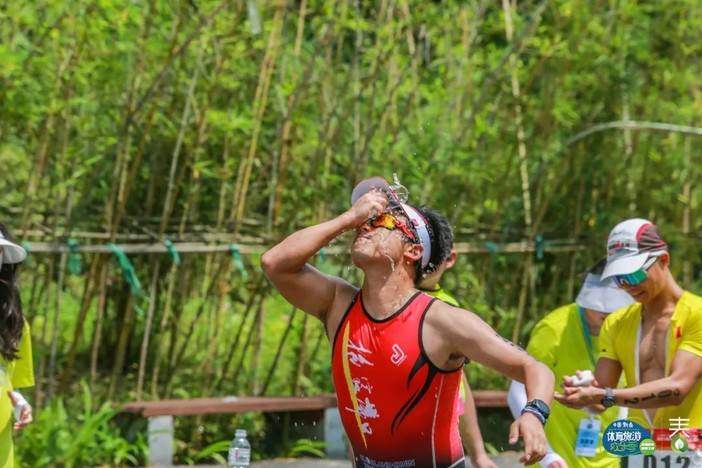 炎热是天气让选手们吃紧苦头,但完赛后,你只会在他们的脸上看到更多笑容。这就是铁三的魅力,这就是黔南都匀的风光。