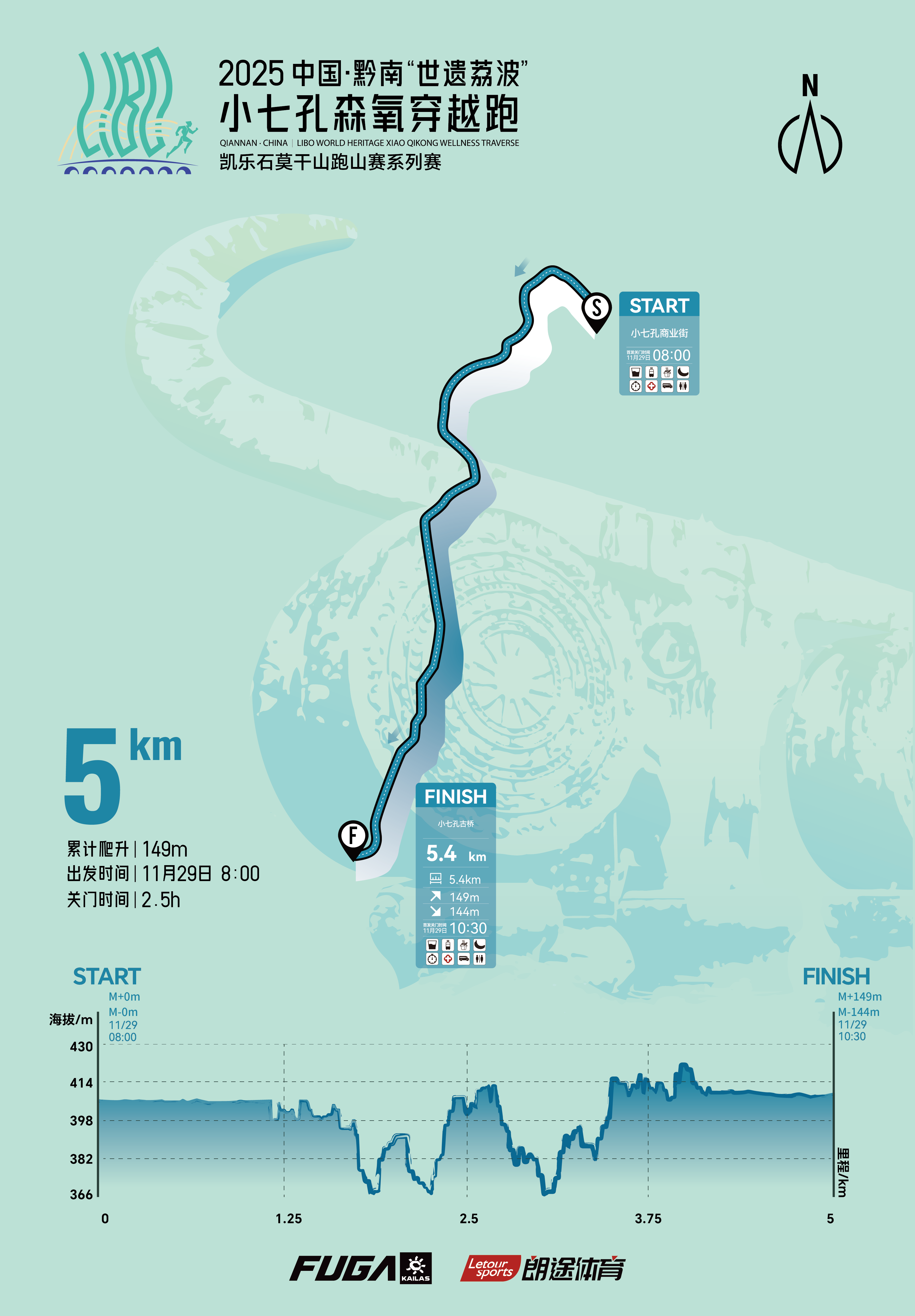 组别设置:荔波60KM、大小七孔30KM、大七孔5KM(亲子组)